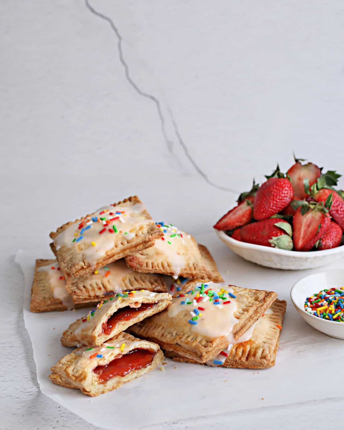 These strawberry pop tarts bake up flaky, fruity, and ridiculously fun. If you’ve never made your own, now’s the time. Recipe card below. Enjoy!